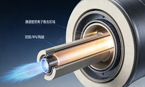霍尔推力器的放电通道(Discharge Channel)是等离子体能量密度最高、材料工况最苛刻的区域之一:高能离子轰击、电子回旋运动、壁面溅射与热负荷叠加。任何材料选择或结构细节,都可能直接影响推力效率、寿命与稳定性。